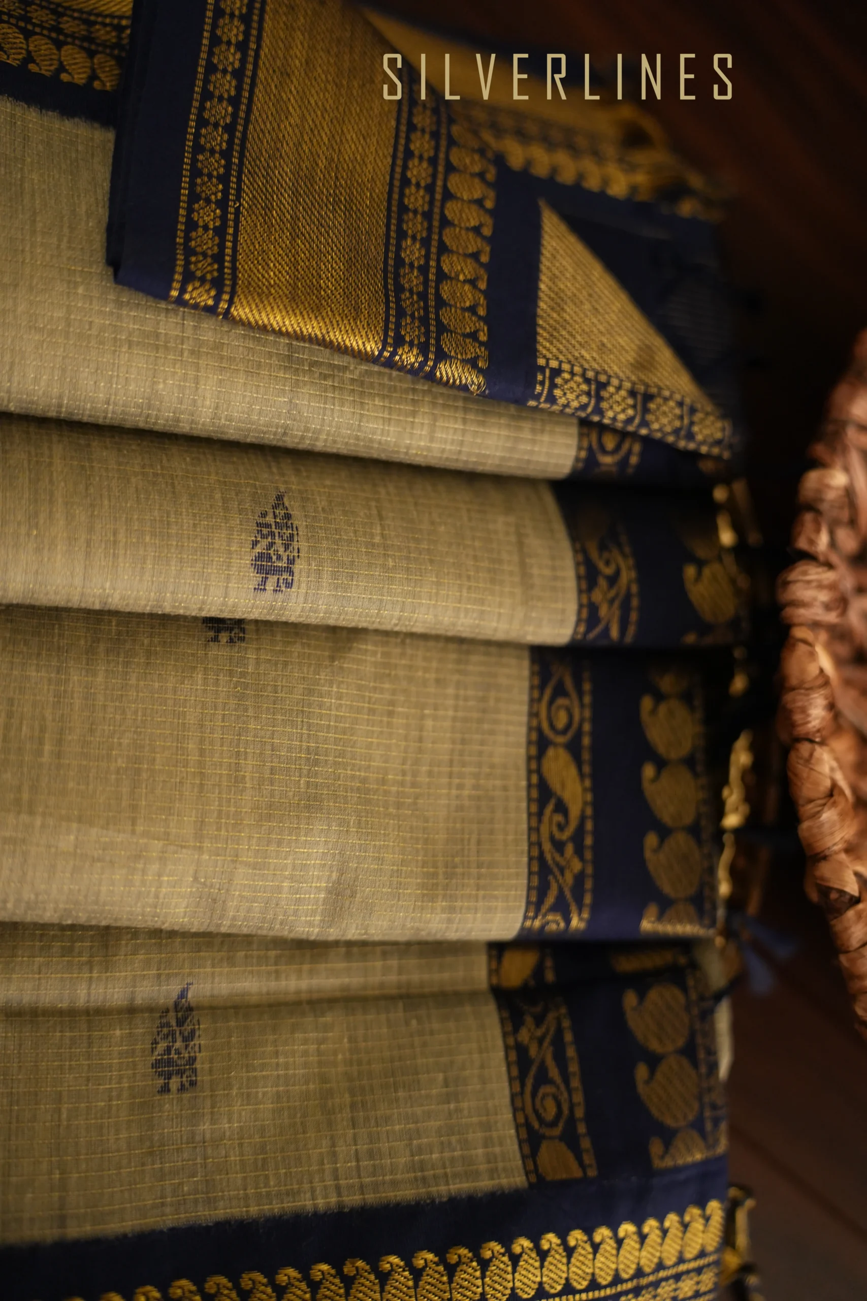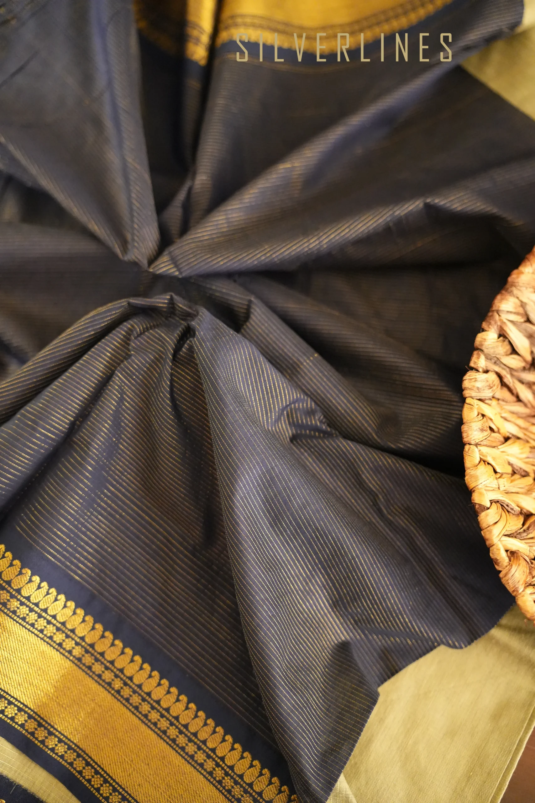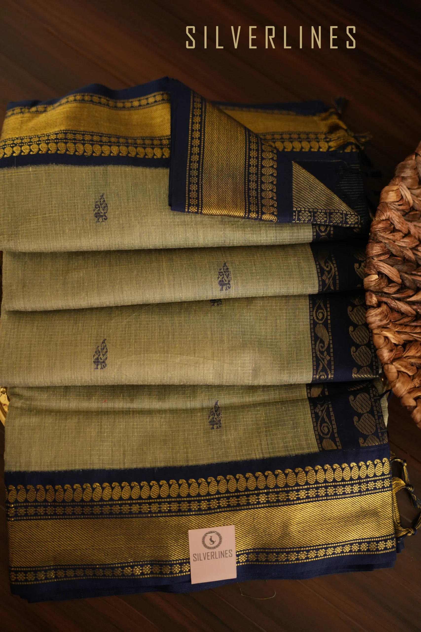 Ash w/ Navy Blue Zari lines and Peacock Thread Butta