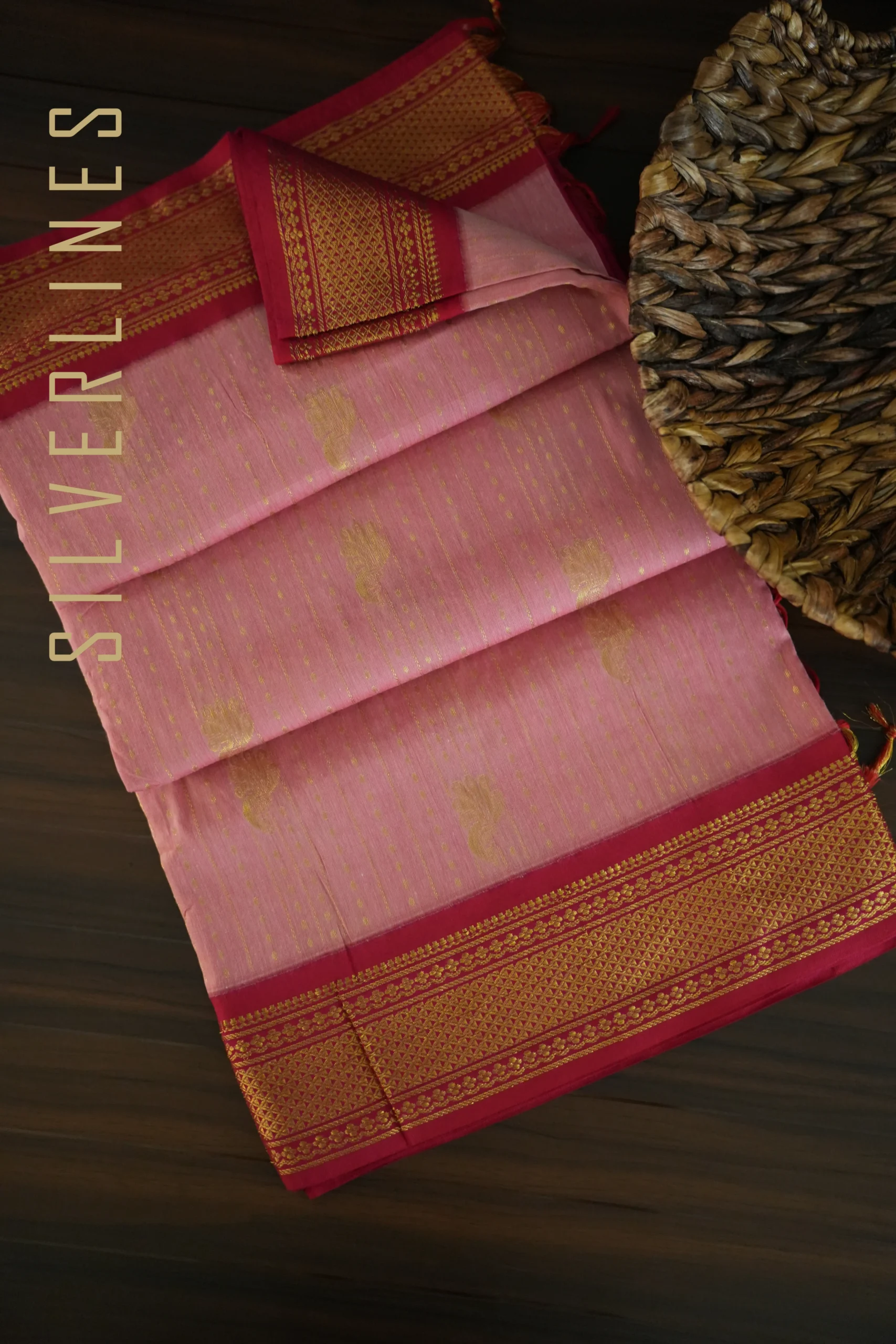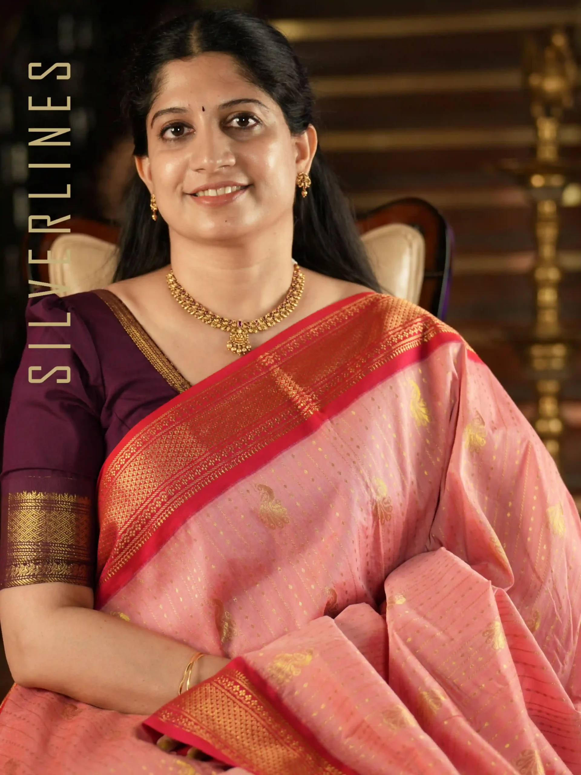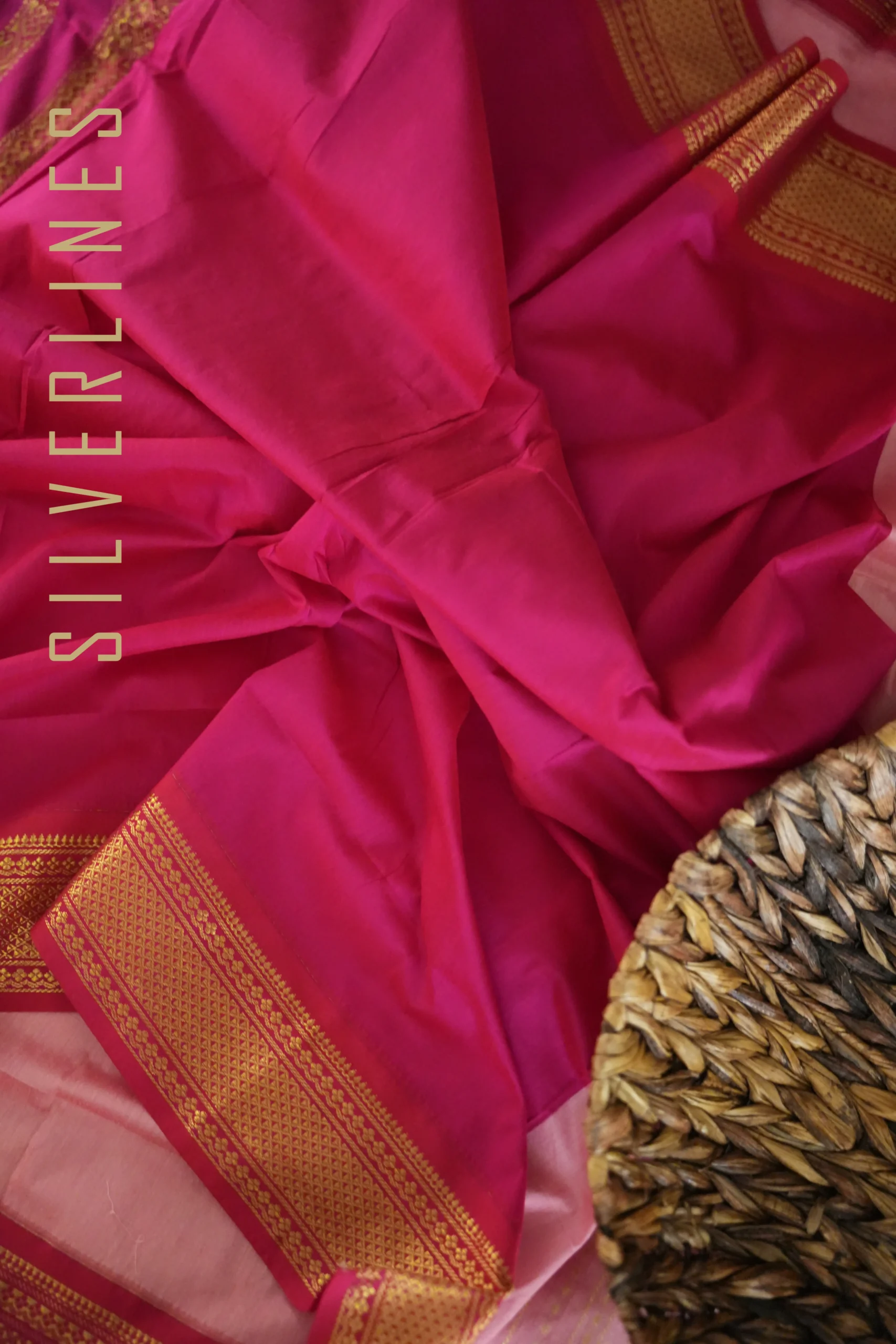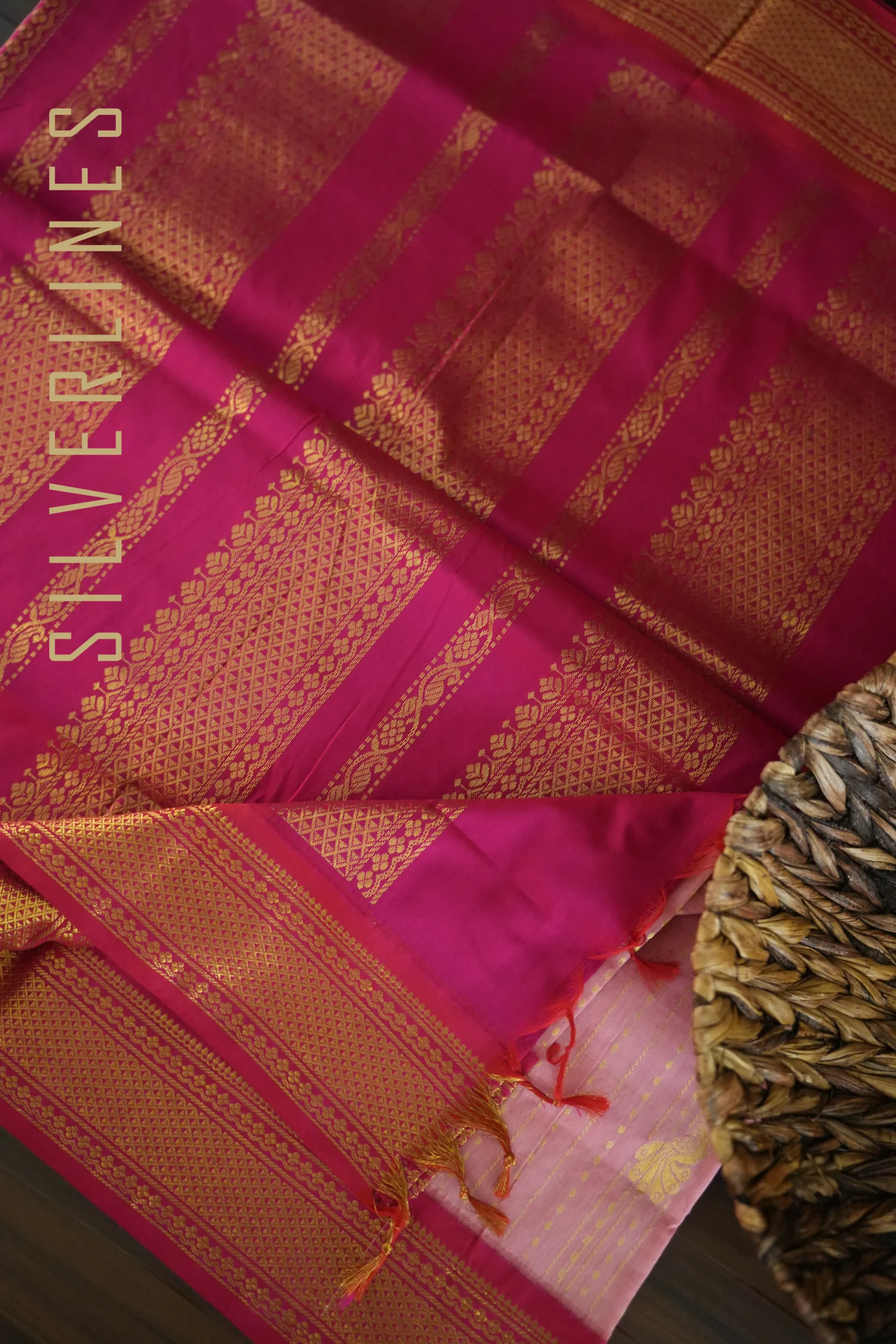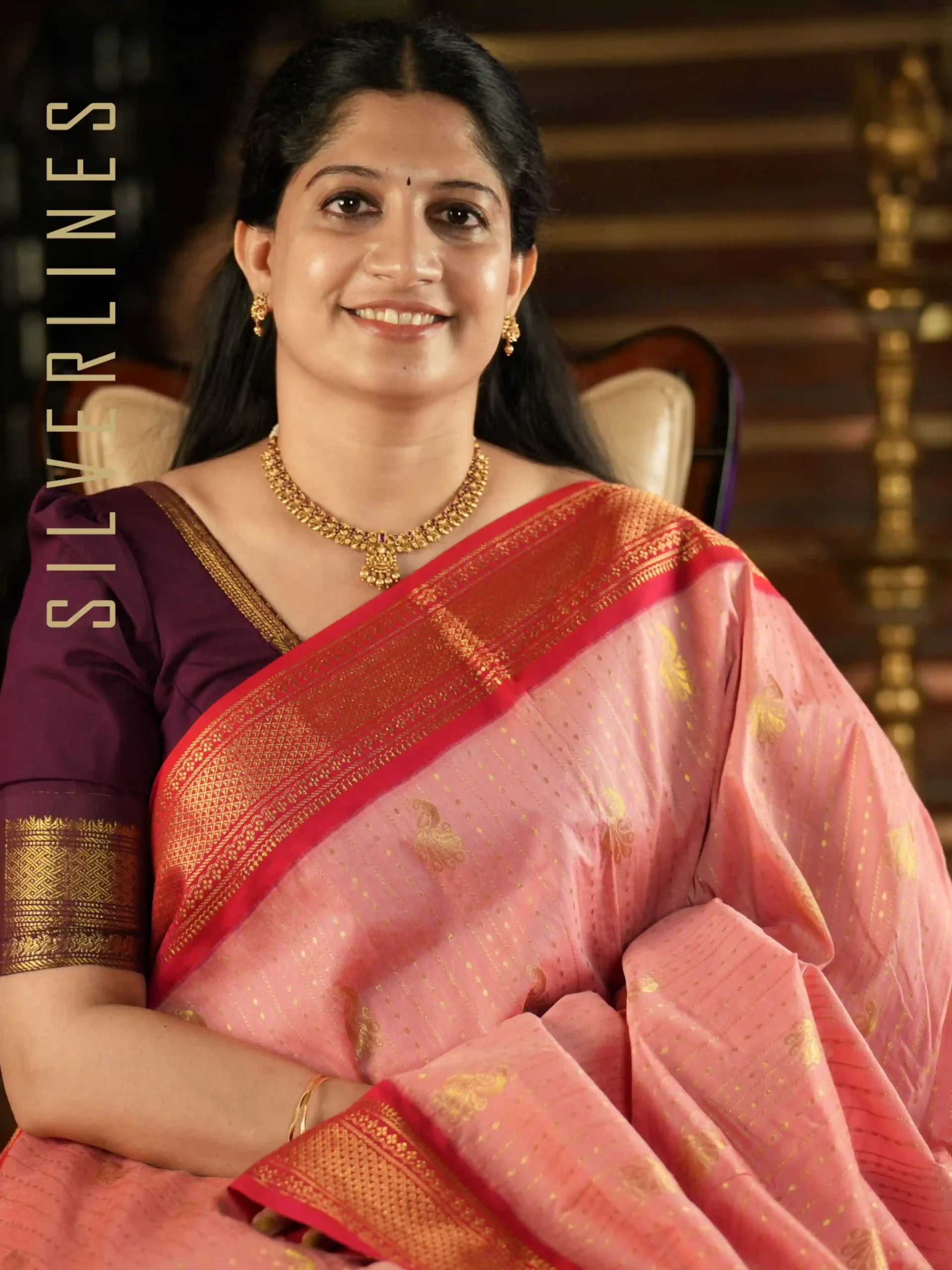 Baby Pink w/ Dark Pink Grand Zari Lines and Peacock Butta