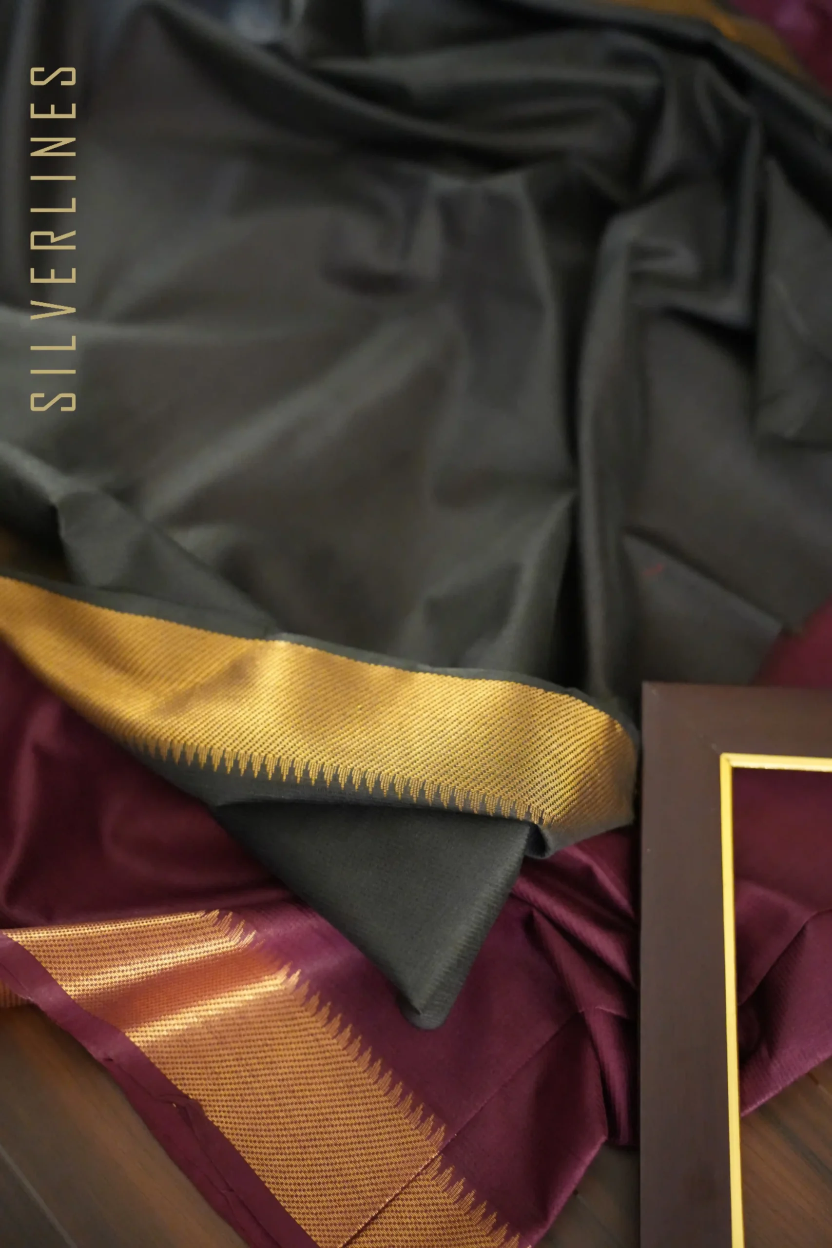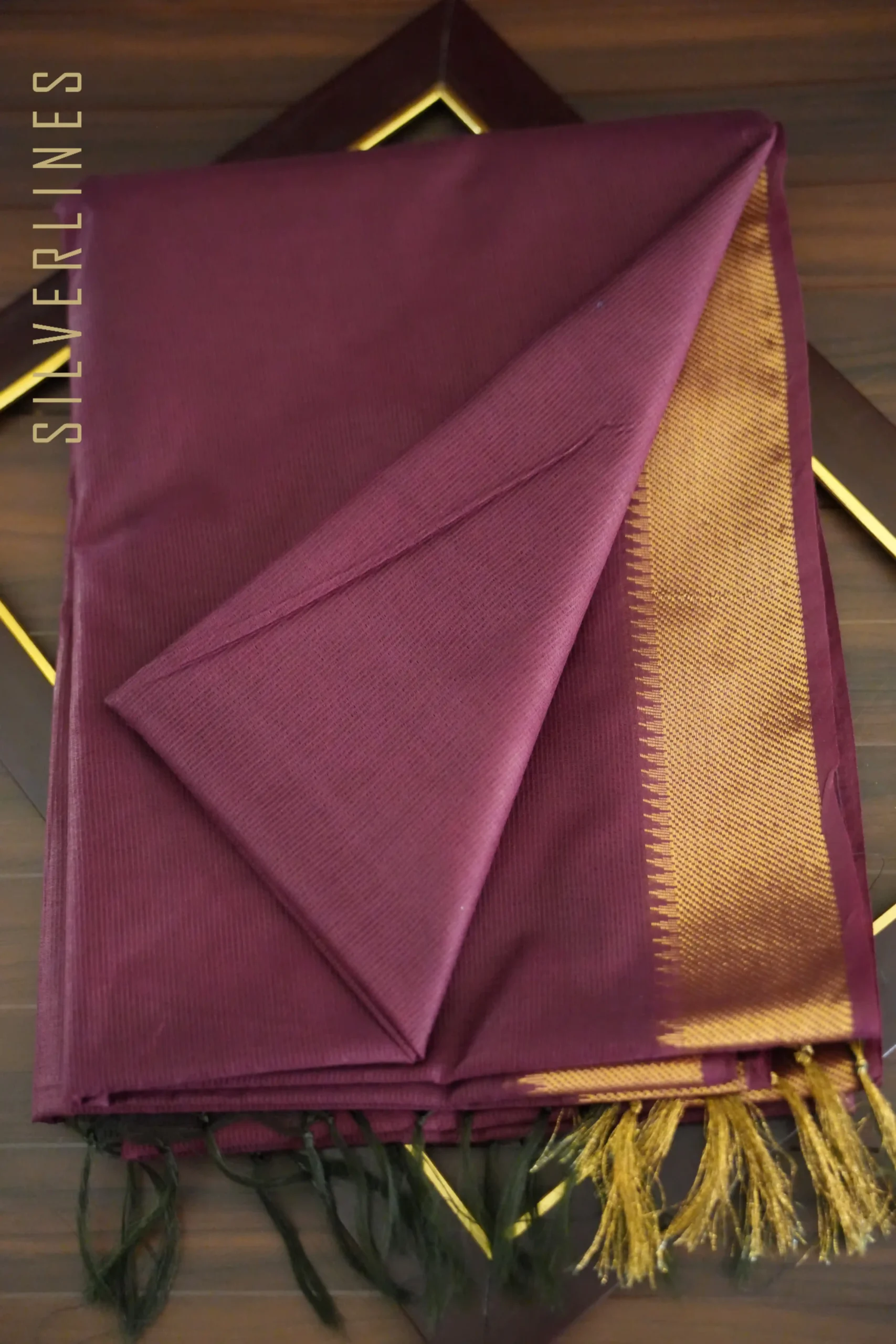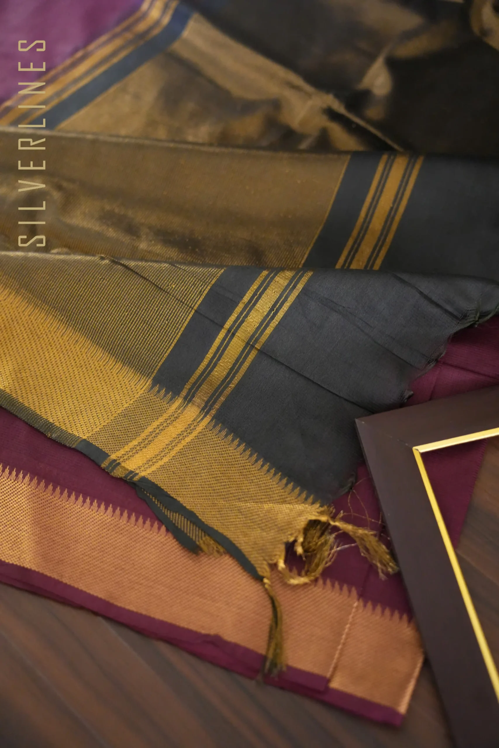 Dark Magenta Purple w/ Black Gold Border Maheshwari Style