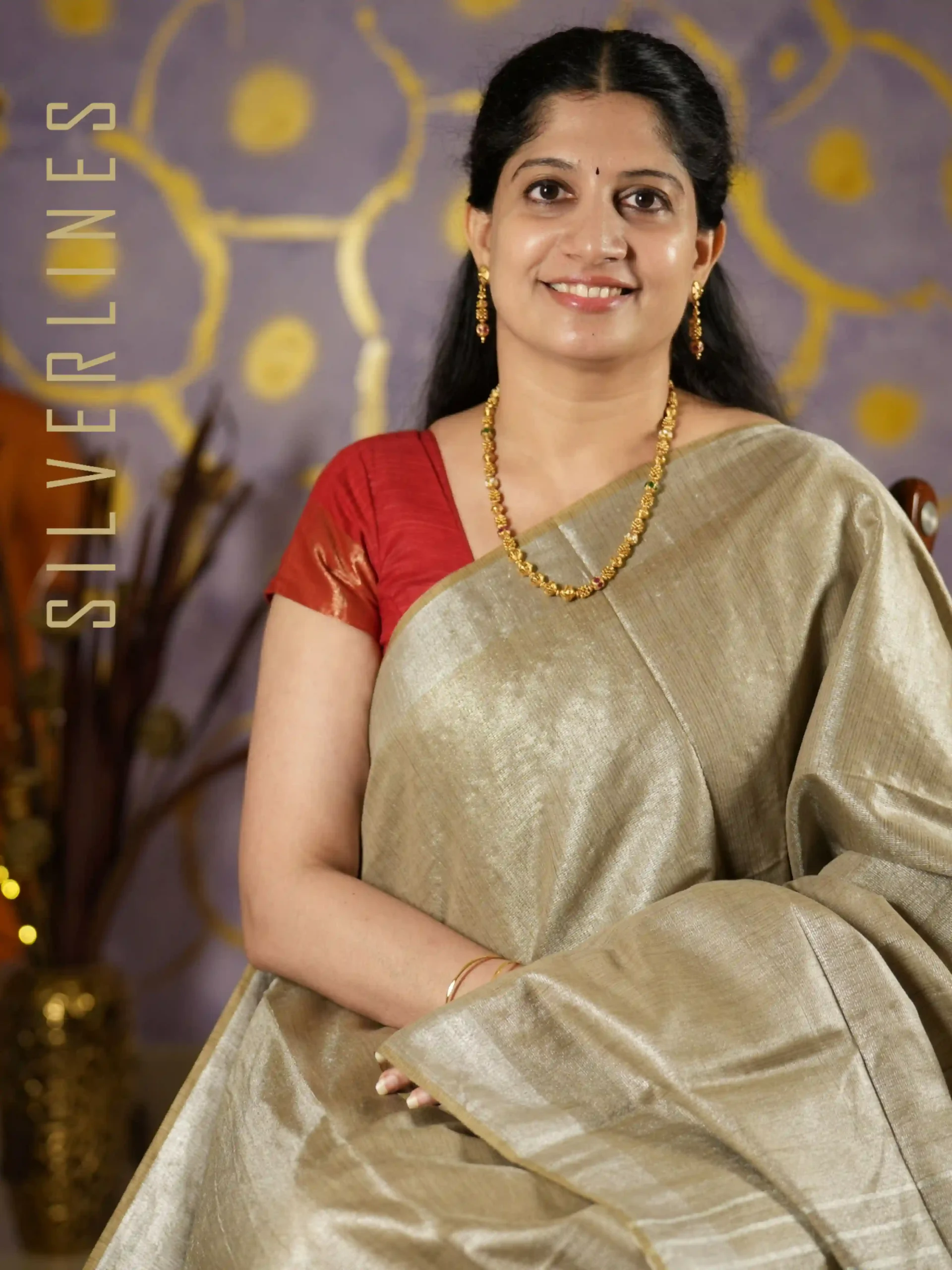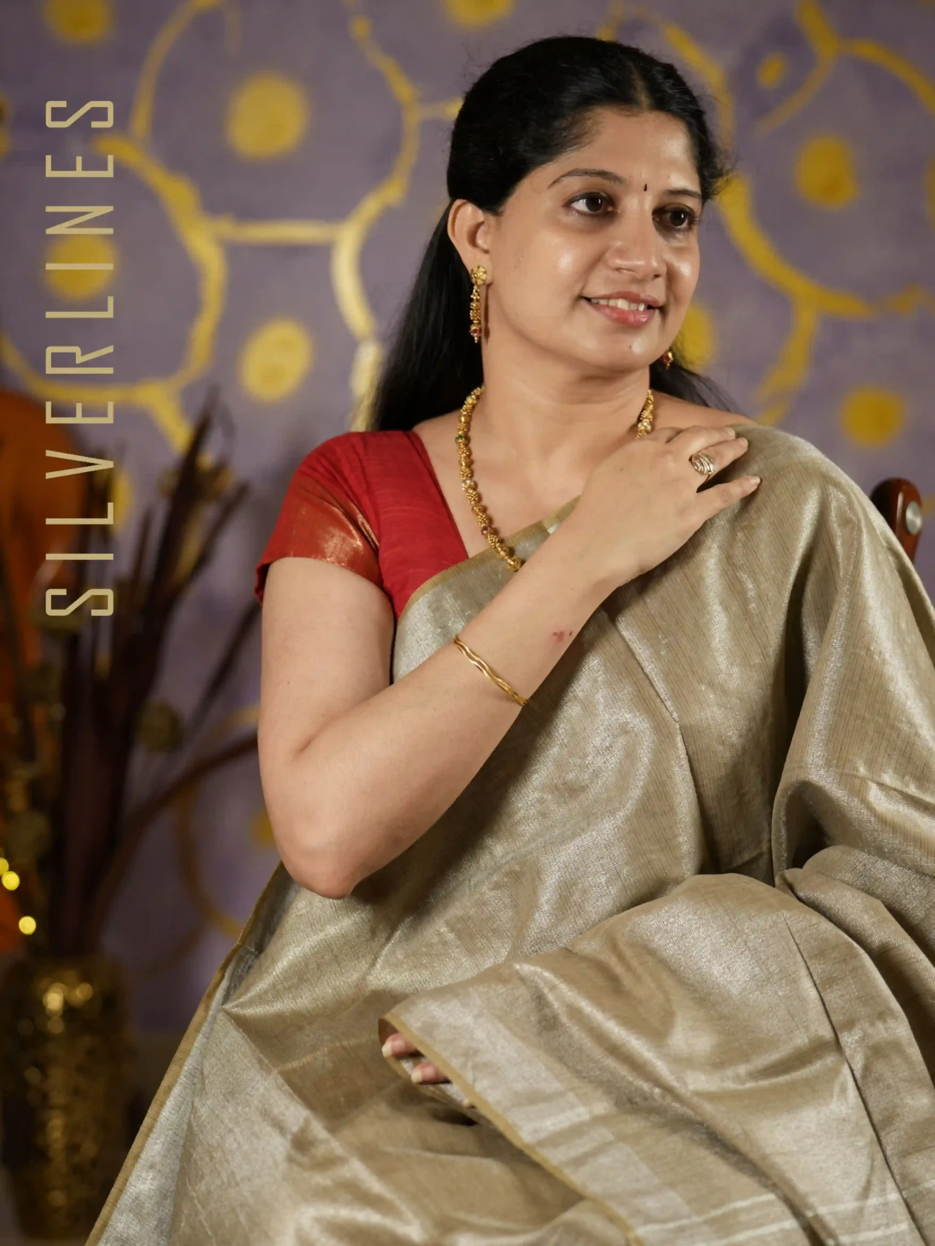 Greenish Biscuit All Self Soft Cotton Tissue Silk with Silver Zari