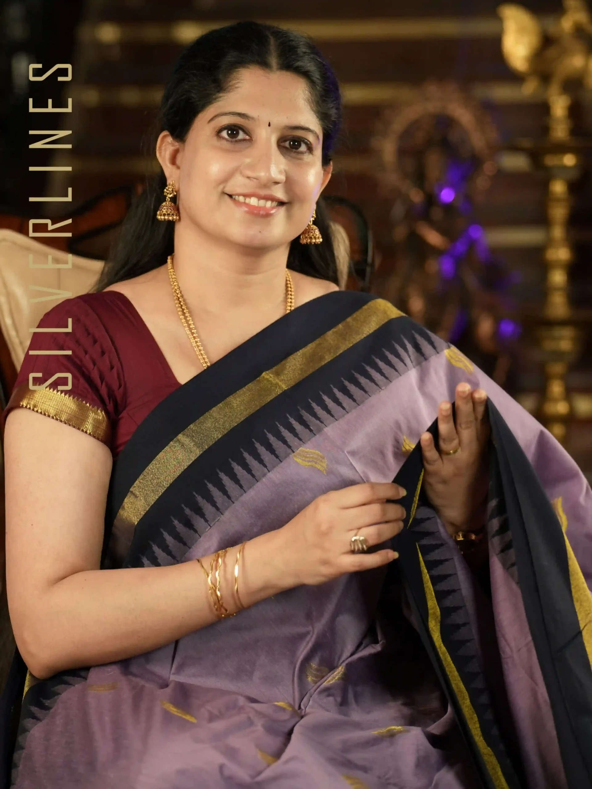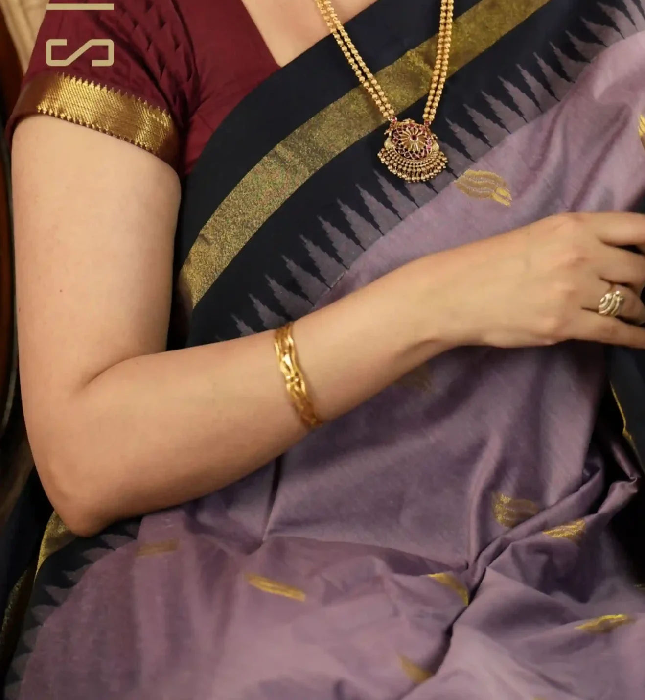 Pallu Style: Zari woven