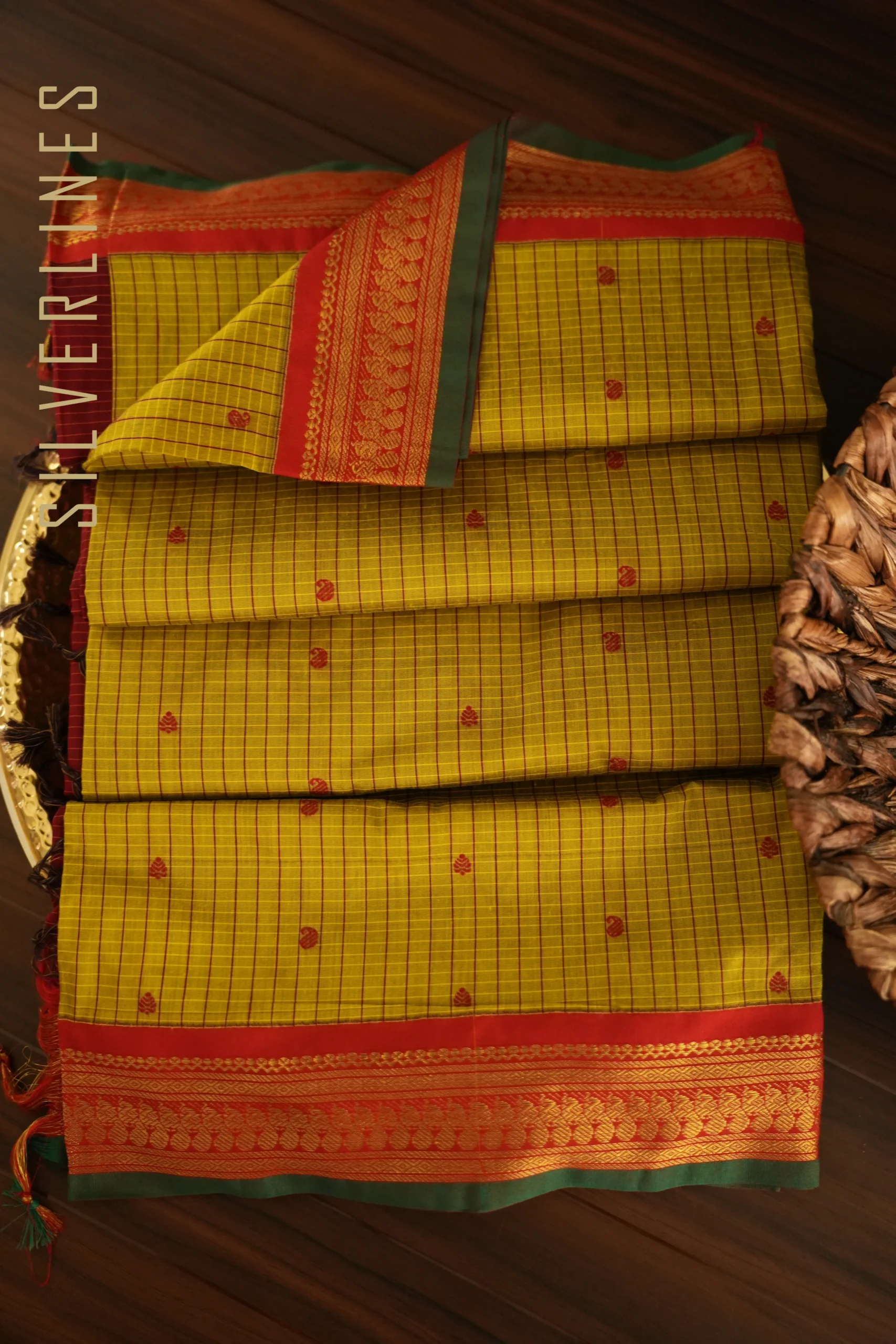 Lemon Green Checks Traditional Red Border and Green Salvage