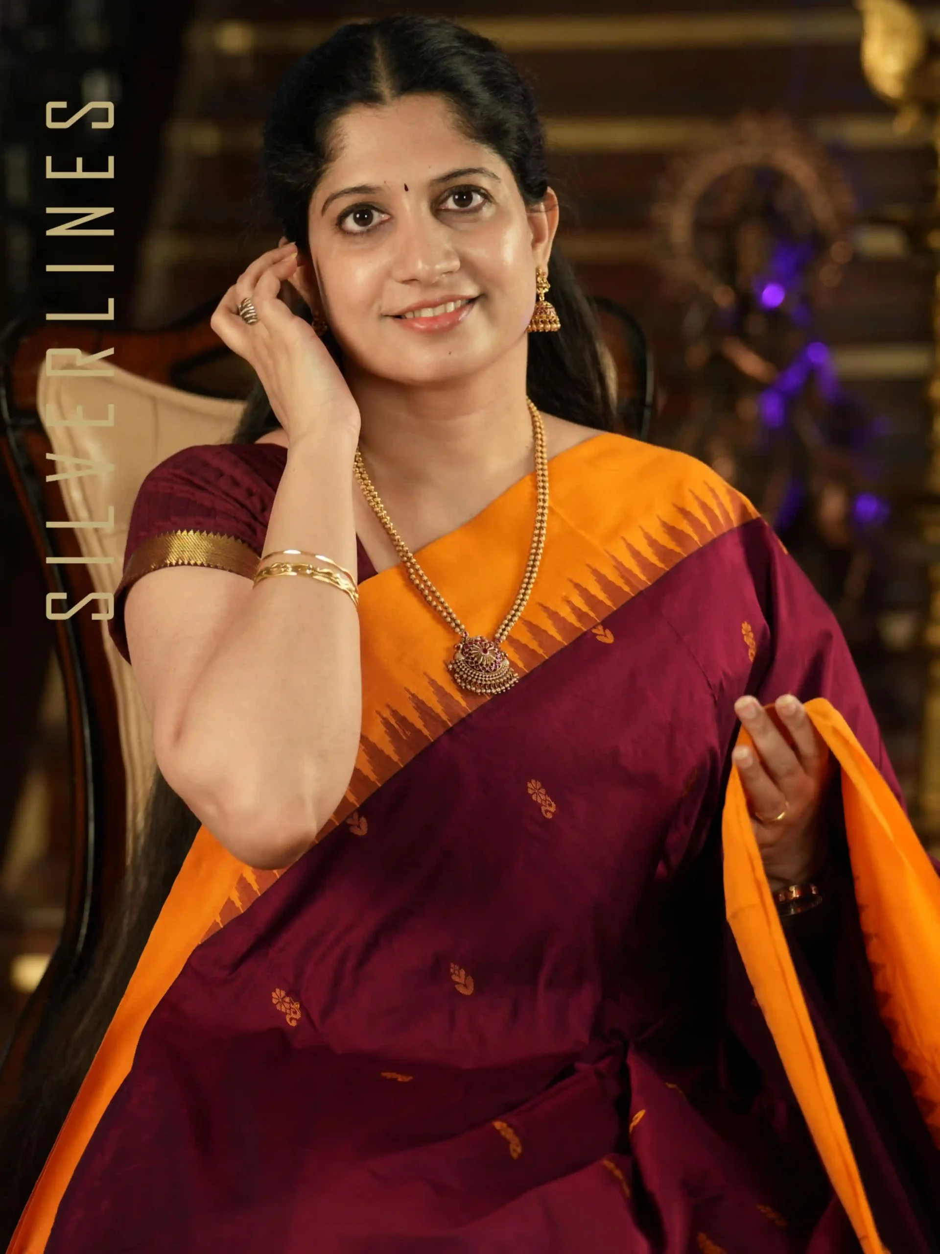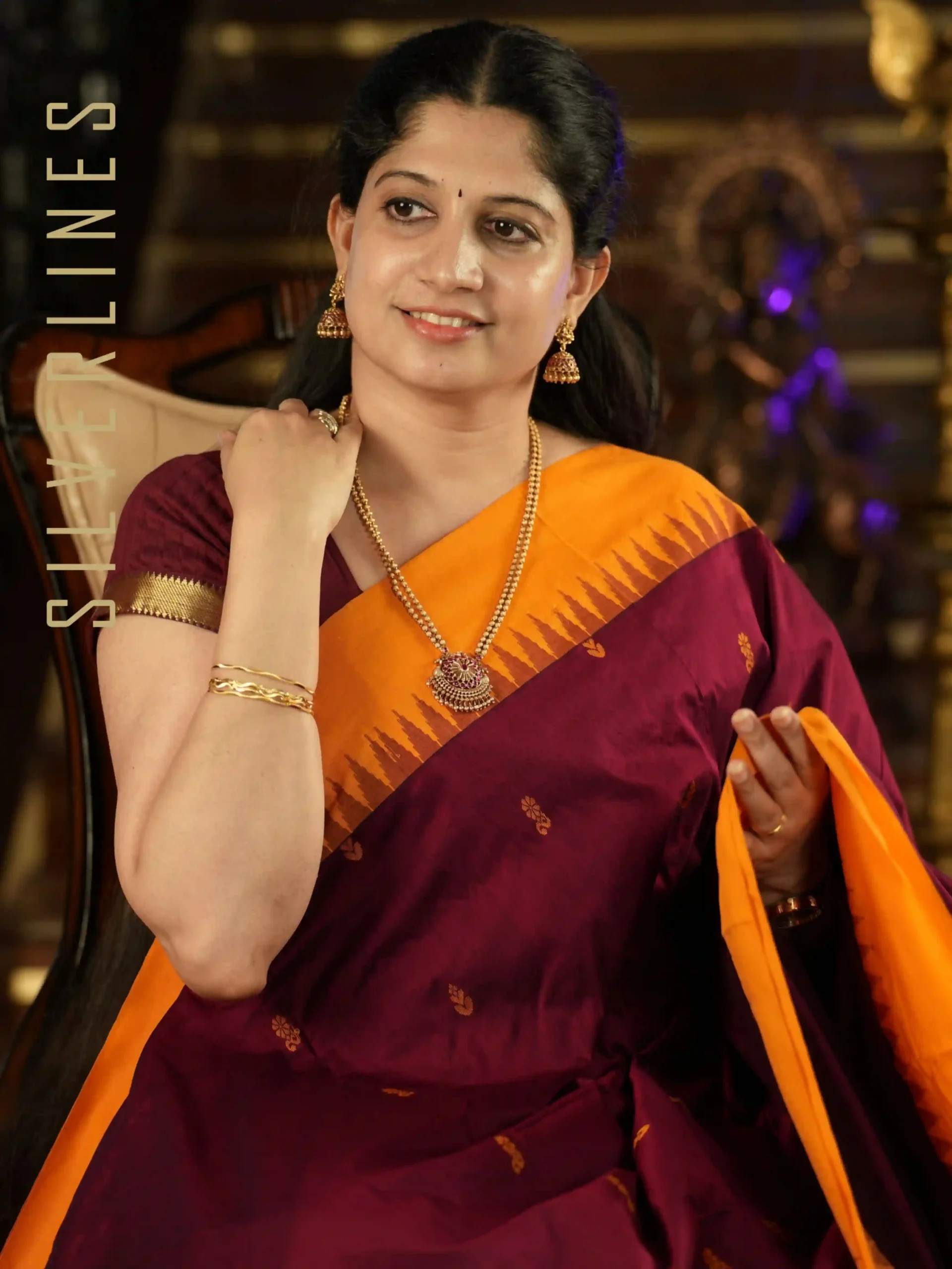 Magenta w/ Mustard Butta and Temple Border Thread Pallu
