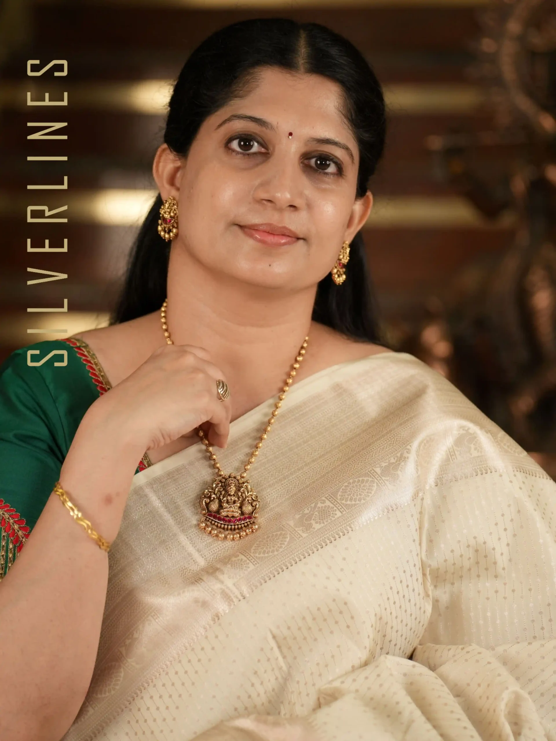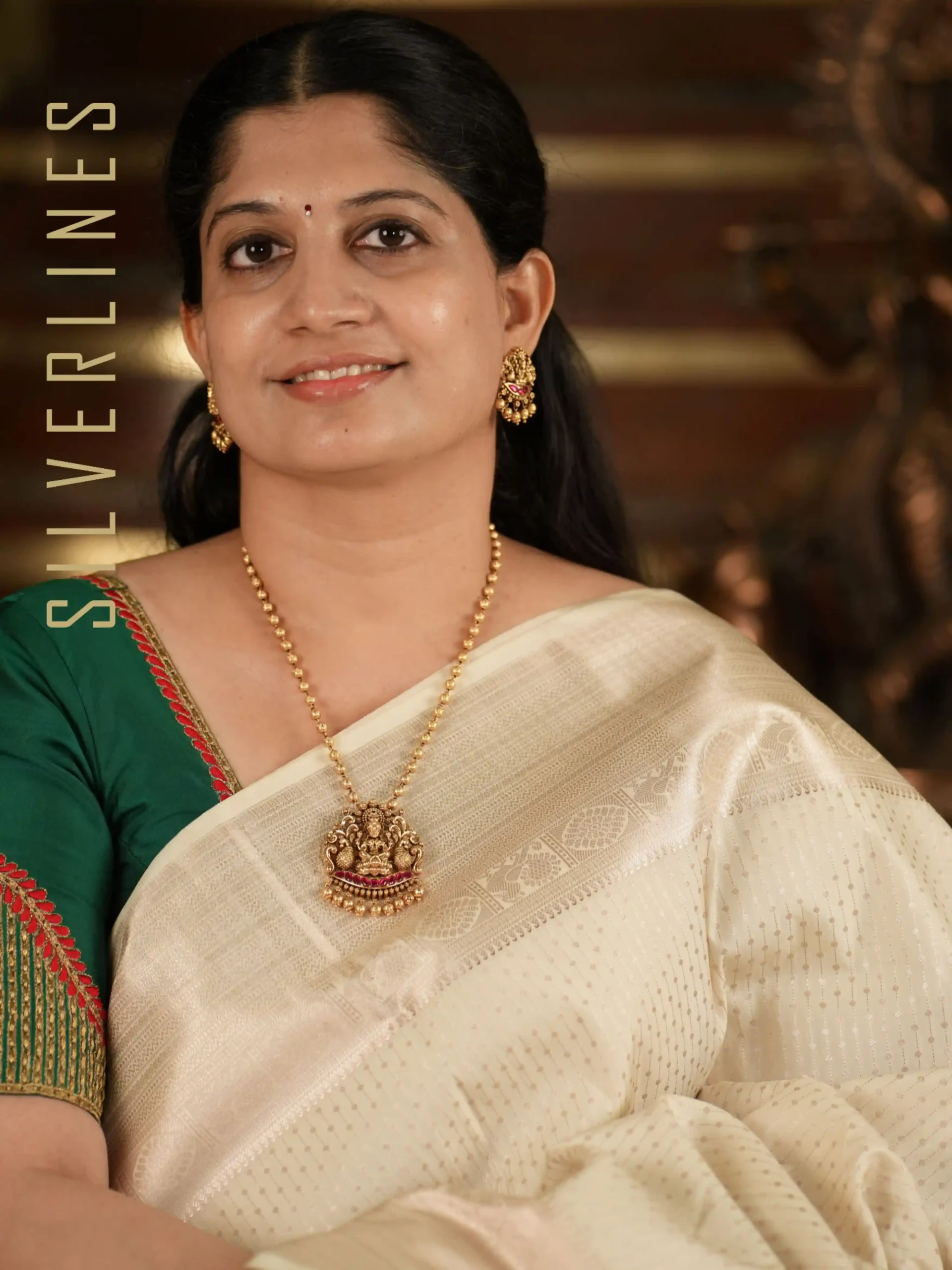 Pearl White w/ Purple Pallu and Blouse with Zari Lines on the body