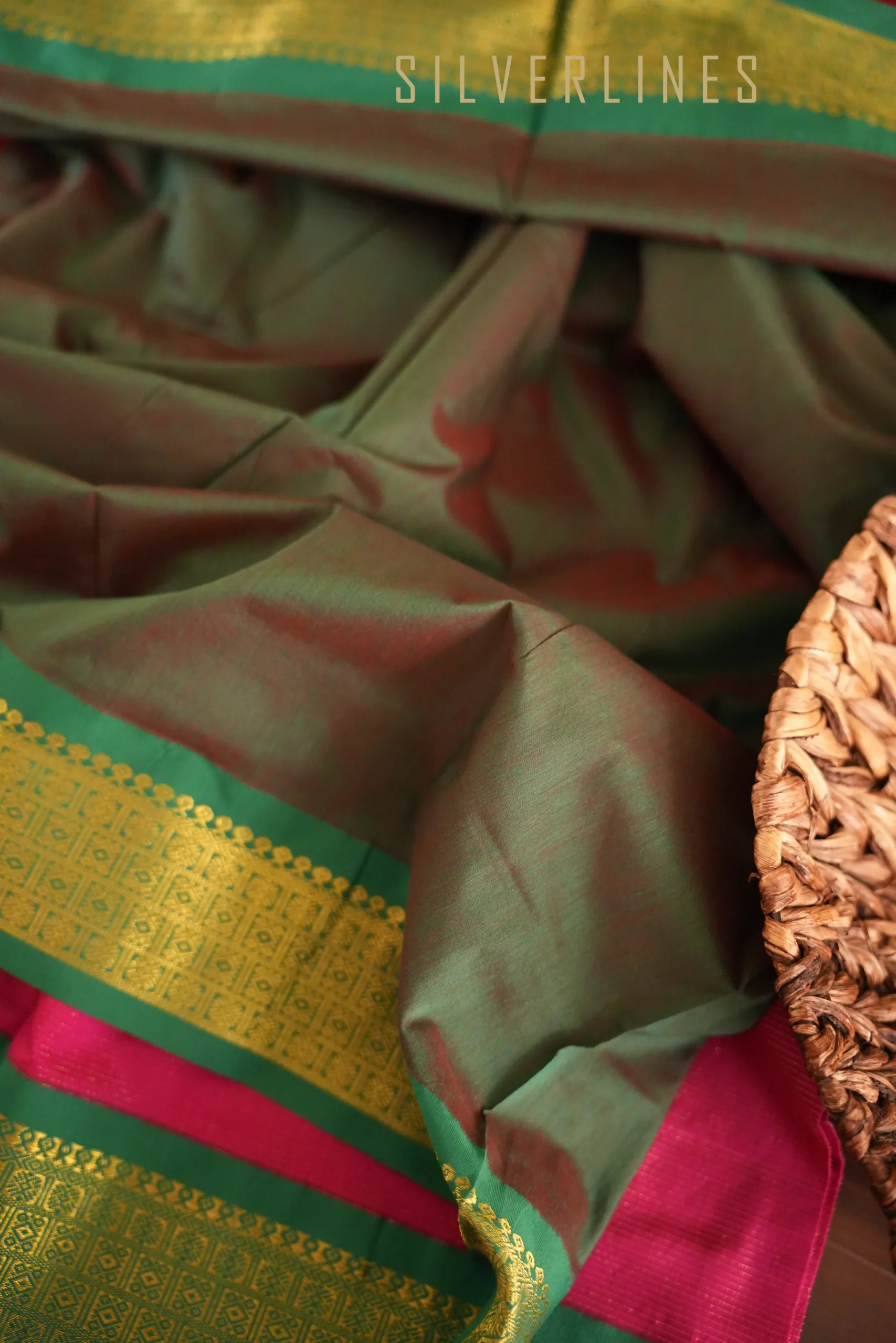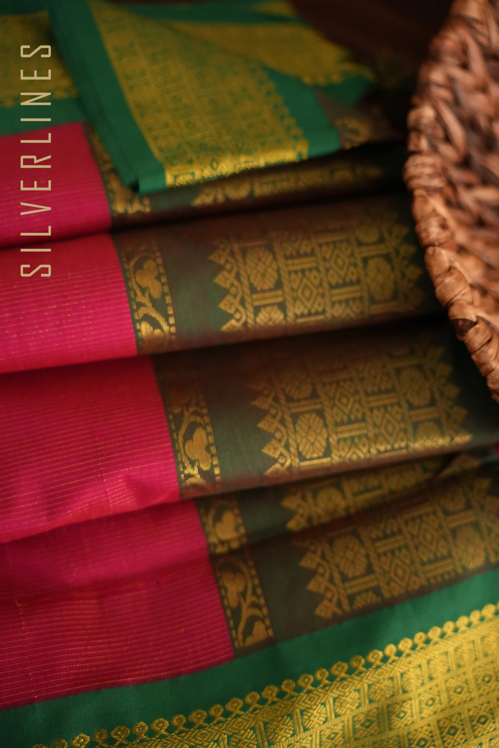Pink w/ Green Vairaoosi Zari Lines and Grand Rudratcham Border