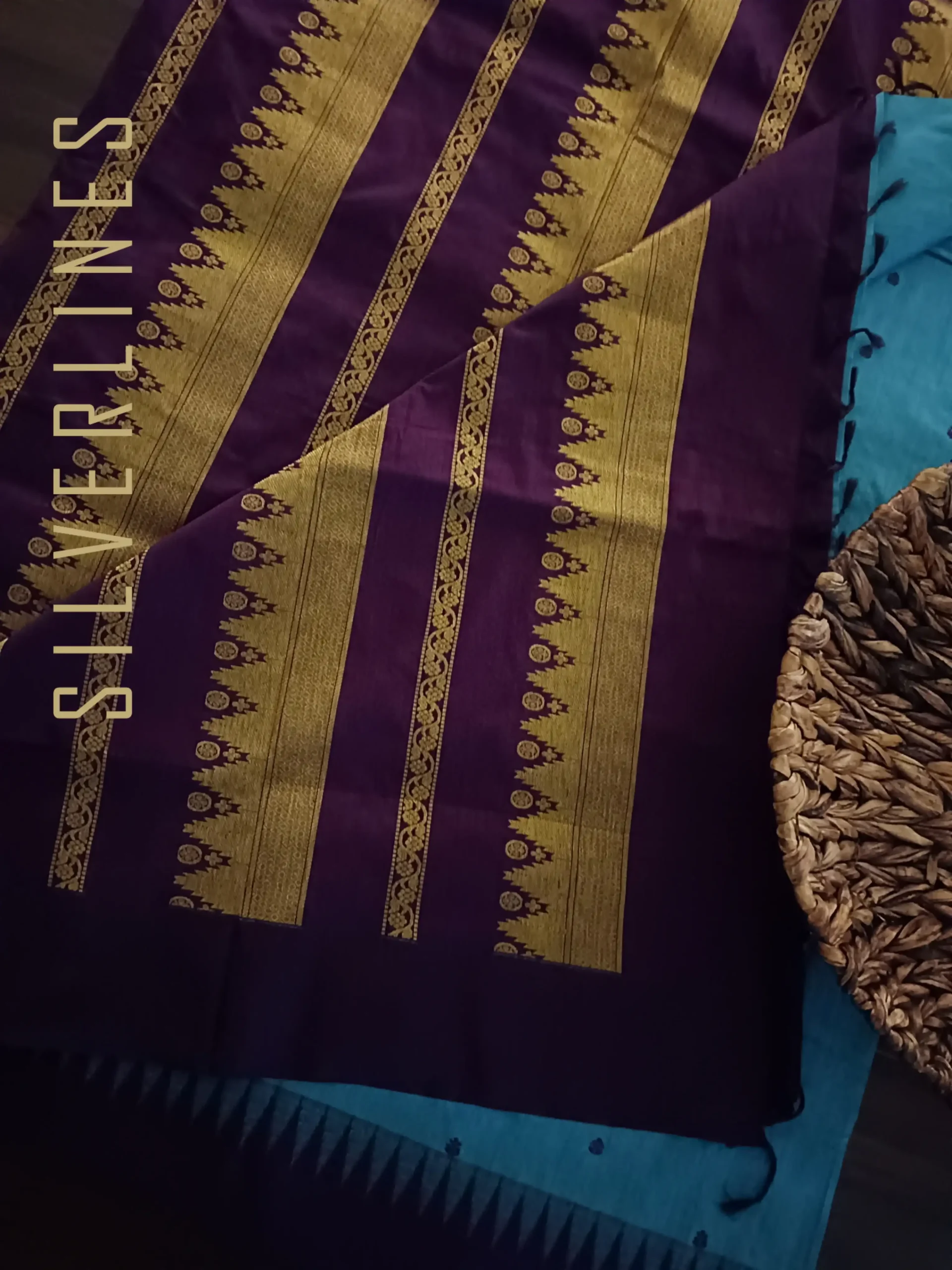 Rama Blue w/ Purple Temple Border Zari Pallu
