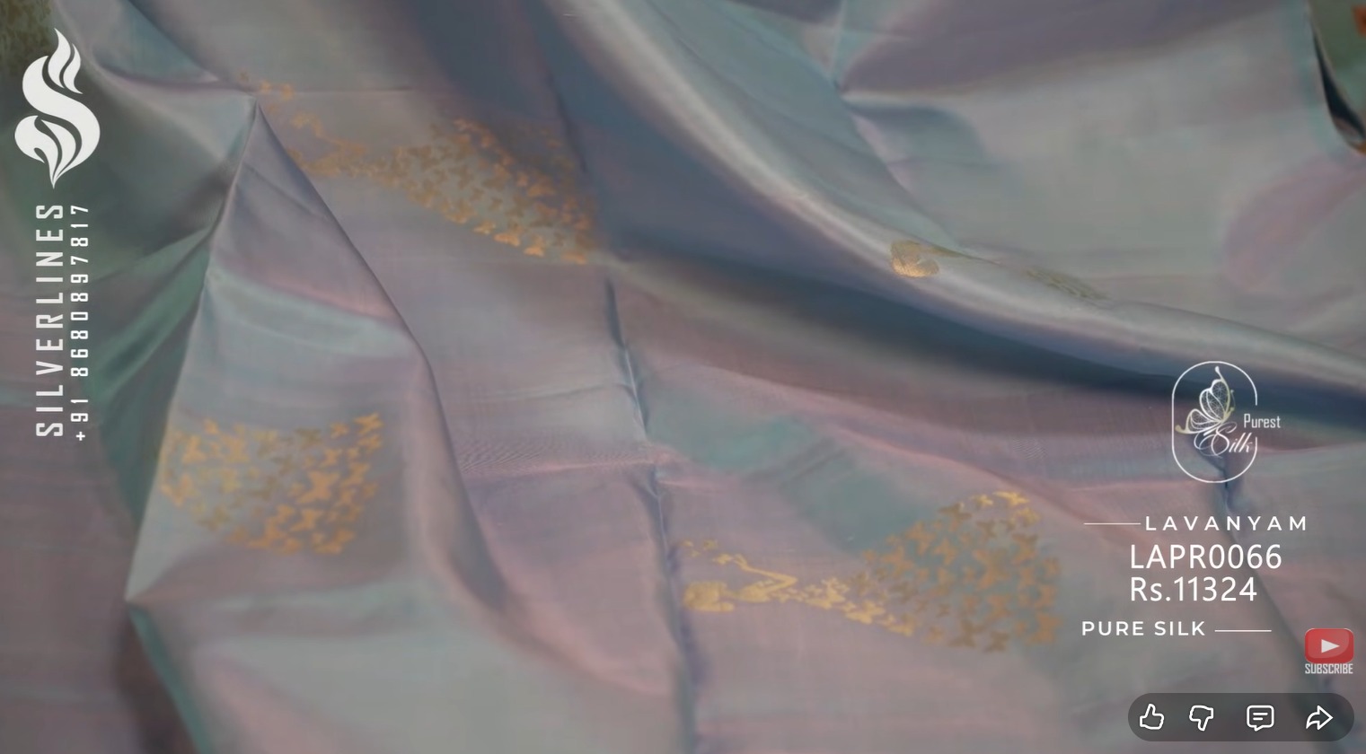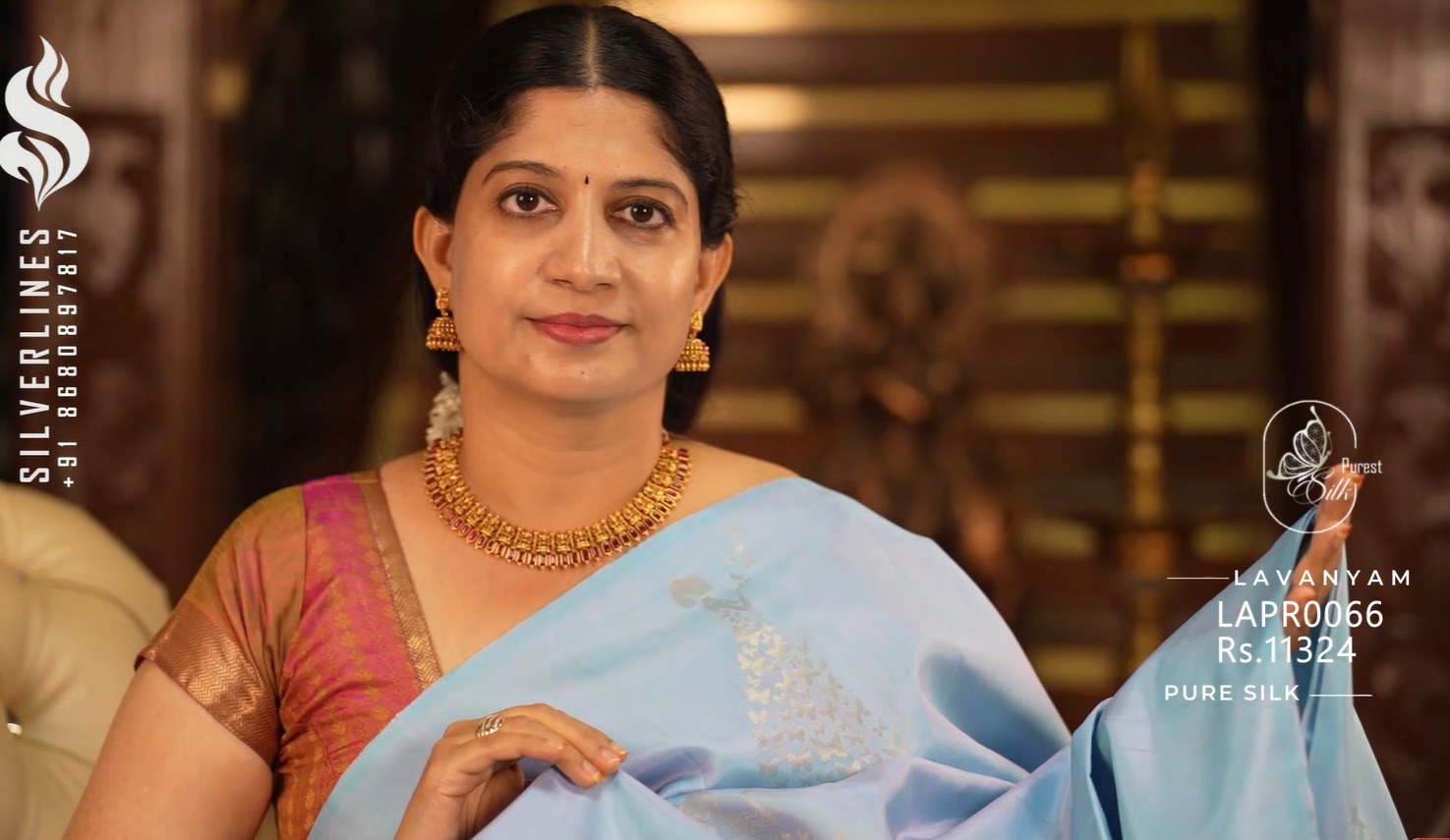 Sky Blue Pure Silk with Signature Butterfly Girl Motifs