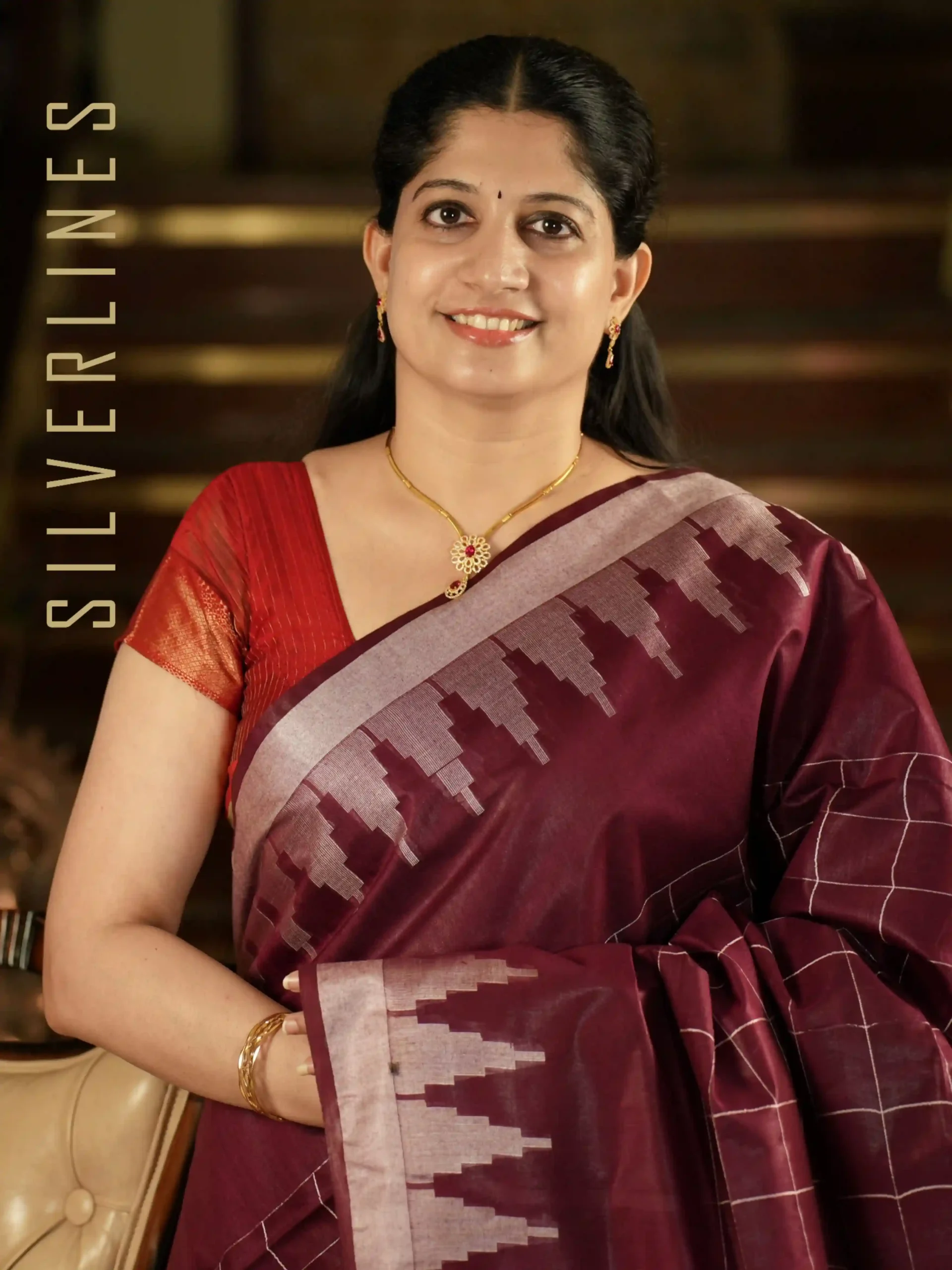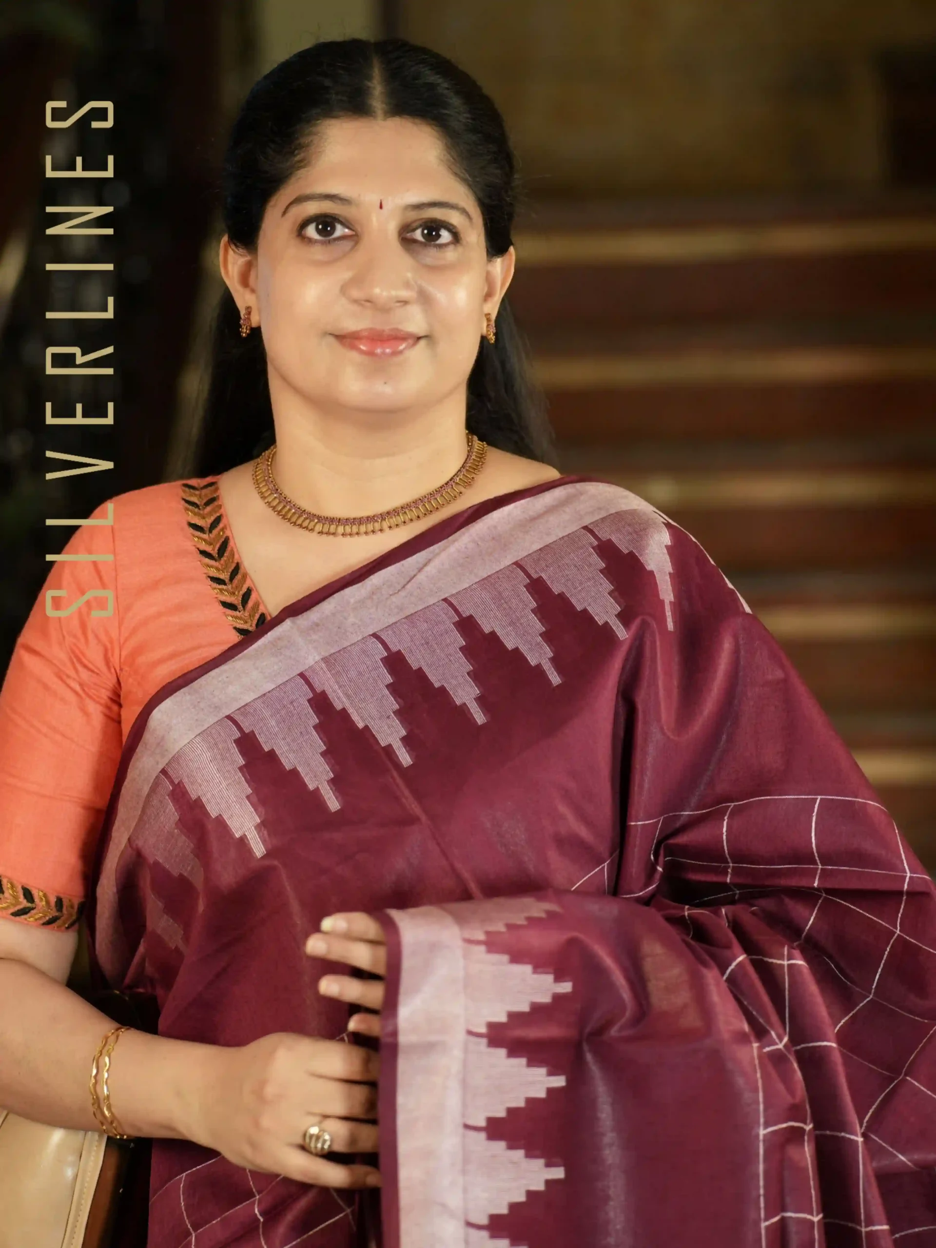 Wine Burgundy w/ White Gopuram Border and Silk Thread Weaving